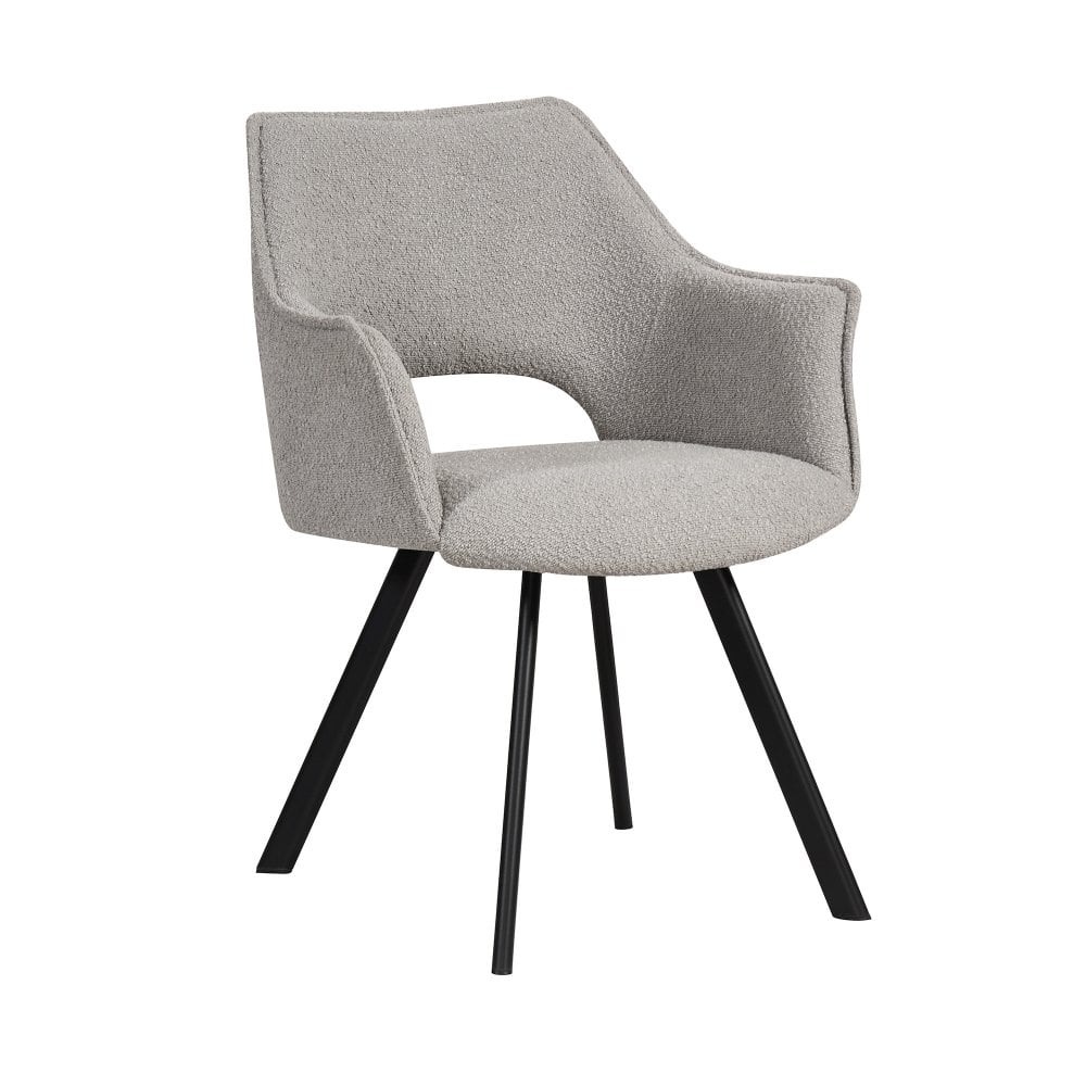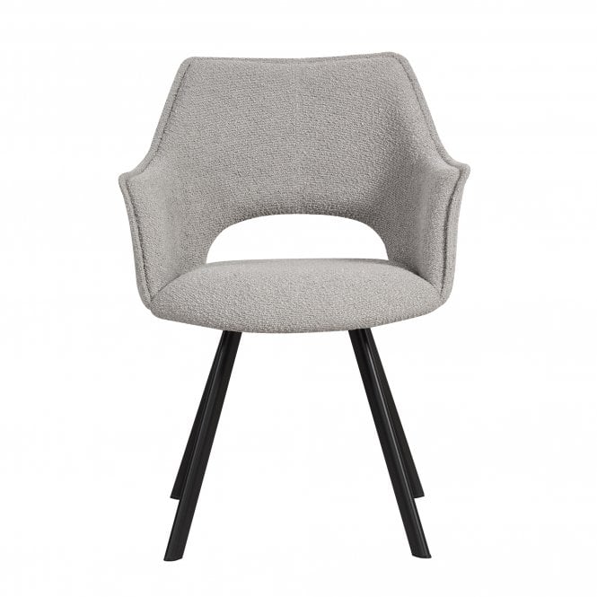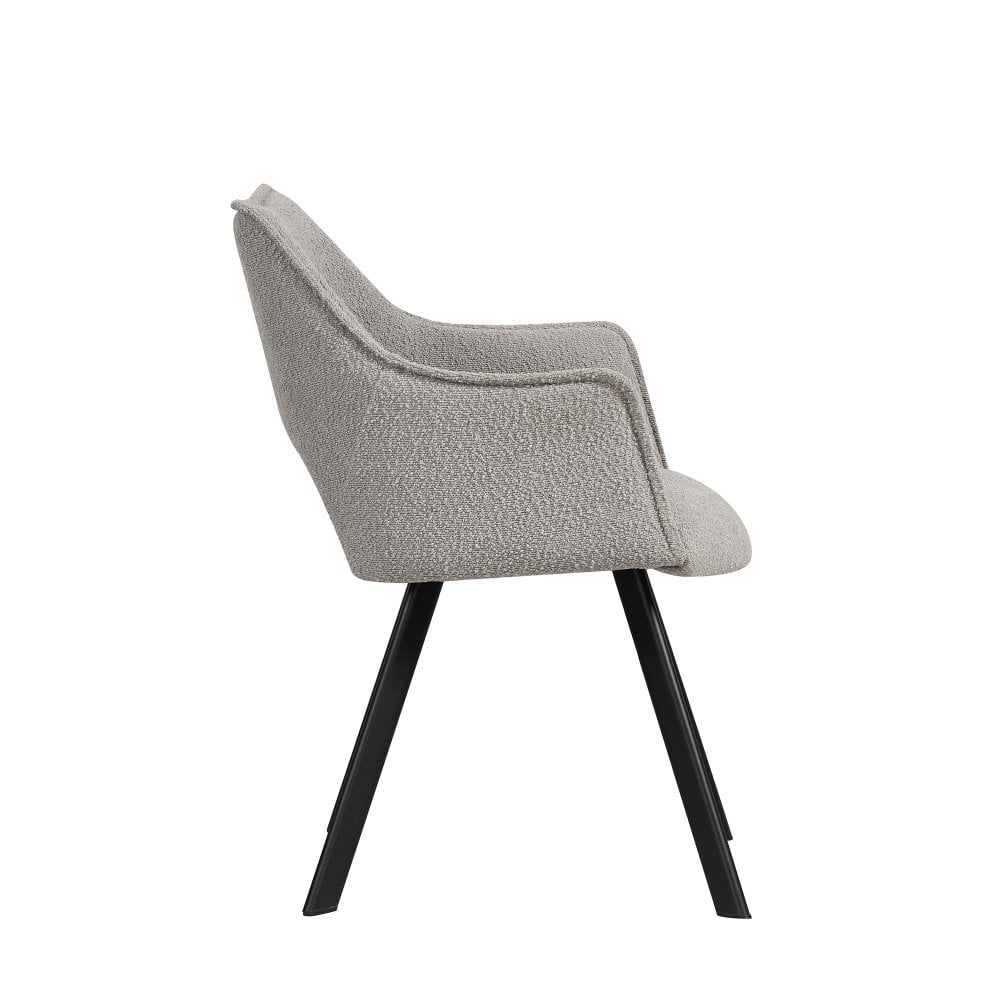 This comes with the stunning grey boucle fabric dining chairs with black metal legs to match the dining table.