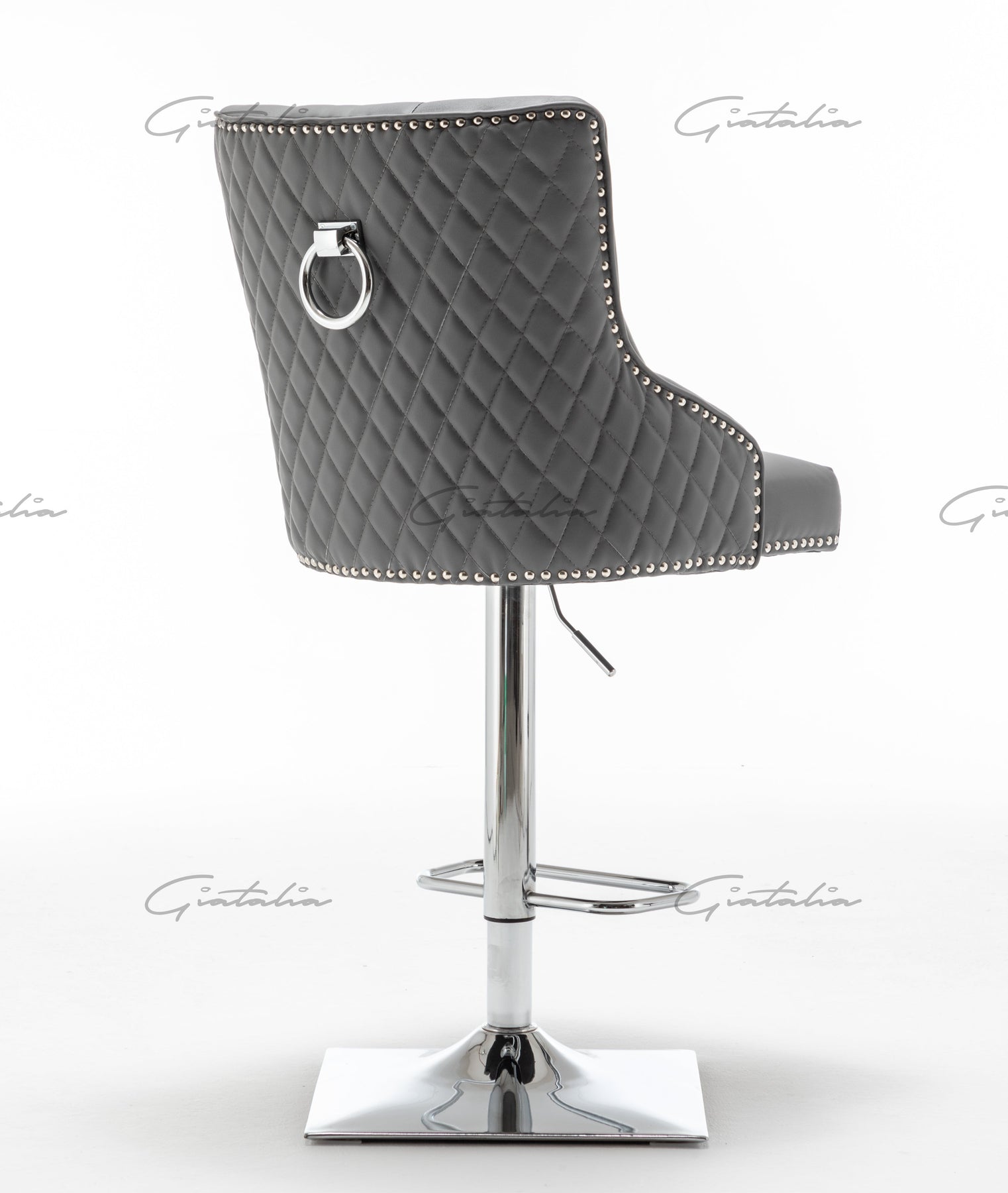 Weston Grey Faux Leather Barstool PU Chrome Round Knocker - Belmont Interiors