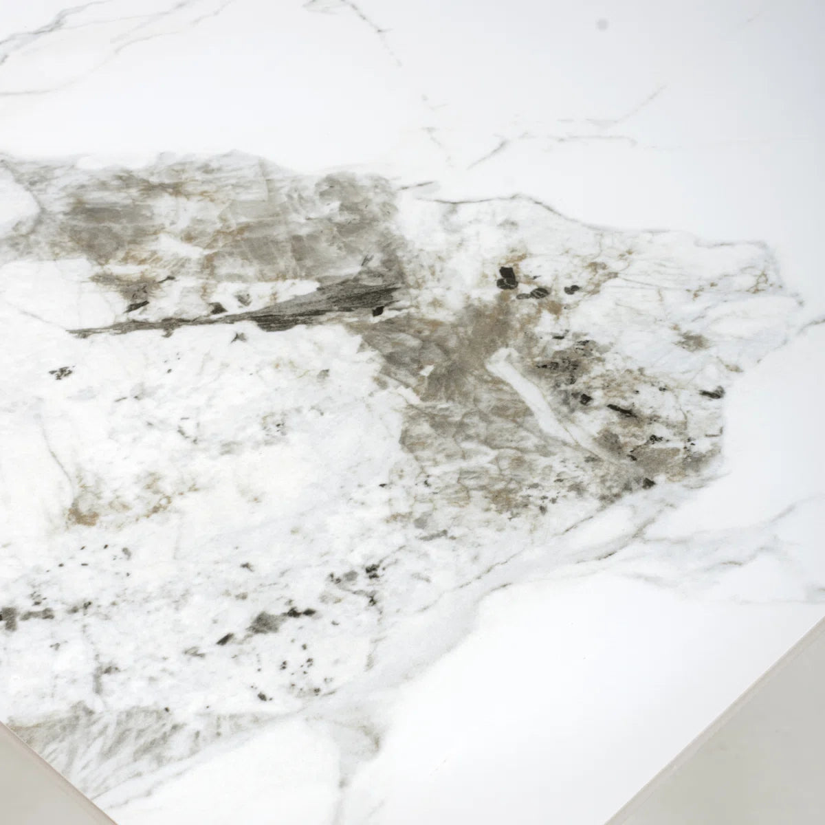 The nova extending Dining Table brings sophistication and contemporary style to your dining room. Crafted with a black powder-coated metal starburst base and a luxurious grey ceramic marble effect table top, this luxurious yet functional table is perfect for formal and everyday use. Scratch proof, heat resistant and easy to clean, it's sure to make a statement. Self assembly.