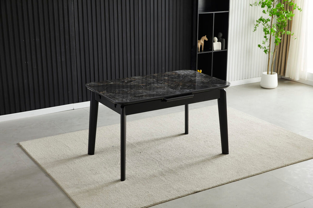 The Savannah Extending Dining Table is a modern and practical centrepiece for any dining space. It features a premium grey ceramic top that’s heat, scratch, and stain resistant, making it ideal for everyday use. The black powder-coated metal legs add a sleek, contemporary touch while providing strong support and durability.